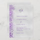 A trendy faux silver looking background. Decorated with purple and violet faux glitter, sparkles. Personalise and add your monogram initials, names, and details.