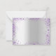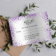 A faux silver looking background, decorated with violet, lavender coloured faux glitter. Personalise and add the reply by date.