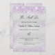 A modern, elegant and minimalist wedding vow renewal invitation. Faux silver looking background decorated with violet, lavender coloured faux glitter, sparkles. Personalise and add your names and ceremony details. Black coloured letters.