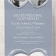 Silver wedding anniversary party event with three photo holders and detachable RSVP invitations with no envelopes required. Beautiful liquid silver effect in a heart shape printed graphics 25 years silver wedding anniversary invitations, personalise with your own wedding anniversary party details, a photo of the happy couple. The twenty-fifth wedding anniversary is traditionally associated with the precious metal silver and the heart symbolises love. Other matching items are available. Graphics and design by Sarah Trett for www.mylittleeden.com and www.mylittleedenweddings.com