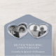 Silver wedding anniversary party event with three photo holders and detachable RSVP invitations. Beautiful liquid silver effect in a heart shape printed graphics 25 years silver wedding anniversary invitations, personalise with your own wedding anniversary party details, a photo of the happy couple. The twenty-fifth wedding anniversary is traditionally associated with the precious metal silver and the heart symbolises love. Other matching items are available. Graphics and design by Sarah Trett for www.mylittleeden.com