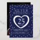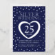 Golden wedding anniversary 25 years party navy blue and sliver foil. 25th golden wedding anniversary party event with a photo on the reverse. Personalise with your own wedding anniversary party details and photo. Other matching items are available. Art and design by www.mylittleeden.com on Zazzle.