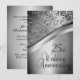 Elaborate silver wedding anniversary invitations for a 25th wedding reception / party. Silver front and back with black text on back giving a classy look to this lovely anniversary invitation.