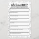This Who Knows Best game is great for everyone to find out how well they know the couple. On the reverse side is a Him or Her quiz. All of the text is editable, so you can change the 'Him' and 'Her' to the names of the anniversary couple. You can also change the questions to make it more personal. Simply click on 'Personalize' on the product page.