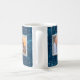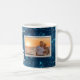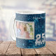 A silver frame on each side shows off two of your favourite photographs on this elegant Silver Wedding Anniversary keepsake mug. It's easy to upload your own photographs! Between the two photographs is the stylised silver text that says "25 Silver", and your custom text for the first names of the celebrating couple. Everything is placed on a sparkly night sky blue and silver background. A nice keepsake gift!