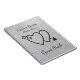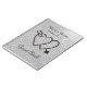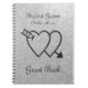Silver wedding guest book | double heart and arrow. Elegant silvery guestbook with faux sparkles and glitters. Styslih chic script typography with love symbol. Glittery and sparkly background texture.