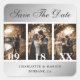 Easily personalise these save the date photo stickers with your own text and images. Silver wedding save the date photo collage square stickers.