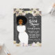 This elegant silver and white bridal shower invitation features an arrangement of floral flowers on a beautiful silver background with an African American woman in a white dress. This invitation will give a first impression of style and elegance for your big event.
