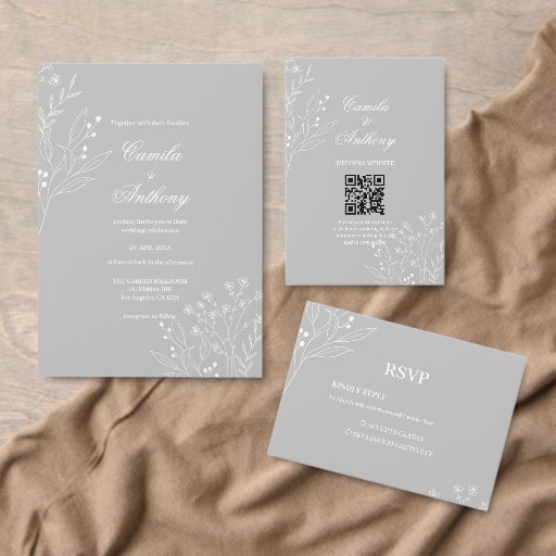 Silver White Corner Floral Boho Wedding Invitation