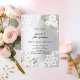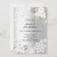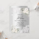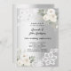 For an elegant and romantic 25th wedding anniversary. A faux silver looking background decorated with white florals, roses and white lace. Personalise and add your names and details.