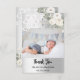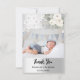 Silver white florals cross baptism photo thank you card