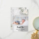 An elegant gender neutral Baptism/Christening Thank You photo card. A faux silver background decorated with white roses, flowers and lace. A small cross. Personalise and add your photo on the front and thank you note on the back.