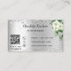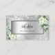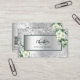 A faux silver looking background decorated with white florals, flowers, eucalyptus greenery. Personalise and add your monogram initials, first name and full name on front.