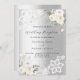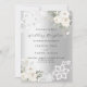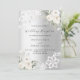 For an elegant and romantic wedding. A faux silver looking background decorated with white, ivory florals, roses and white lace. Personalise and add your names and details.