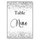 Silver white glitter calligraphy table nine 9 number
