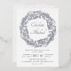 Silver foil winter berries wreath winter wedding invitation. Presented with an optional green winter berries pattern on the back. To change, go to customise further.