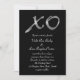 A sparkly silver "XO" decorates this wedding invitation on a bold black background, making it elegant and glamourous. It would work beautifully for the romantic evening wedding, glitzy and chic formal event, or trendy whimsical affair. Scroll down to see coordinating items in this collection.