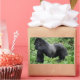 Photo sticker of a strong silverback mountain gorilla, the leader of the group, in its natural habitat in the green jungle of middle Africa in the 'Volcanoes national parc' in Rwanda.