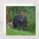 In this exciting image, a powerful silverback gorilla stands in lush green grass, its gaze fixed ahead with a solitary tree in the background.