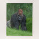 In this exciting image, a powerful silverback gorilla stands in lush green grass, its gaze fixed ahead with a solitary tree in the background.