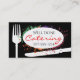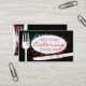Silverware or eating utensils with colour splash text box on this business card for a personal chef, caterer or catering company, cooking classes, restaurant tours or other food, cooking, or culinary business.