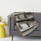A quality printed throw has its advantages. This is a much finer weave throw than its loopier cousins, and though lighter, it is worth the investment for custom room accessorizing. The back is much prettier than the typical brown, and the fringe on the long sides very vivid, the selvage nicely done. Before photographing, I washed the throw in cold water, delicate, with a thicker woven throw the same size. On tumble dry low, this throw was dry in half the time as the other. This is a very practical quality if you use throws for furniture covers or to wrap up in frequently. The sleekness of the fabric makes it a great layer for accenting or protecting without the feeling of sitting on too much stuff. Perfect for napping or when you feel a light chill coming on. The color printing is beautiful and on this fabric, matched the design and color of my Photoshop image. This is an advantage for blending room fabrics and colors. The fringe on the short sides prints the colors from the design image and therefore varies from the side fringe. I streaked a white fractal line through the plaid pattern to give the illusion of weaving. This printed as crisp as an illusory thread, and put some white in the short side fringe, showing another advantage of print vs loomed- for artistic purposes, line lines, detail, and color integrity can be planned and preserved. My loomed throws have color limitations and more of a needlepoint texture. Print throws reproduce an exact image. The throw felt a little stiff straight out of the package, but this went away in the first delicate wash. Of course I searched the wash water for ink or bleeding and there was none.
