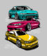 Anime Style design that portrays the evolution of the chassis of the legendary Silvia, the image shows the S13, S14, S15 models.