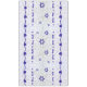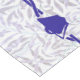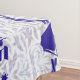 This tablecloth has the classic bell-and-pomegranate motif in blue with leaves and a Star of David, and the words "Mazal Tov," and "Siman Tov" in Hebrew.