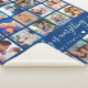 Simple 25 Photo Collage Quote Family Name Blue Sherpa Blanket