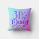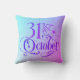 The combination of vibrant blues and purples, along with the captivating date and the eerie spiderweb, produces an enchanting and captivating composition that encapsulates the very essence of Halloween. This pillow effortlessly balances cuteness with the enchanting spirit of the season, making it a unique and inviting addition to your decor.