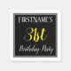 This simple and elegant paper napkin design features a message like "FirstName’s 31st Birthday Party", with the "31st" in fancy yellow-coloured text, within a black-coloured square area featuring a simple border outline. A personalised name can be used. Napkins like these could perhaps be used at a birthday party for somebody who is celebrating their thirty first birthday. [~Z0000150]
