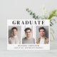 Simple graduation announcement featuring 3 photos across the middle, "Graduate" in elegant typography and the grad's name, school and class year in modern typography.