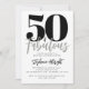 Fifty and Fabulous modern simple white, grey and black script 50th birthday invitation that you can personalize and send out for your fiftieth birthday party celebration. The words "50 and Fabulous" are set using popular typography font. The text colors can be changed using the edit menu.