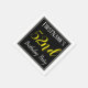 This simple and elegant paper napkin design features a message like "FirstName’s 52nd Birthday Party", with the "52nd" in fancy yellow-coloured text, within a black-coloured square area featuring a simple border outline. A personalised name can be used. Napkins like these could perhaps be used at a birthday party for somebody who is celebrating their fifty second birthday. [~Z0000150]
