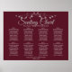 This 8 table seating chart will make it easy for your guests to find their seats at your wedding reception. Features a simple elegant design of grey text with a burgundy background and a silver vintage floral filigree border. Has seating assignments for 80 guests.
