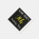 This simple and elegant paper napkin design features a message like "Name-Here’s 9th Birthday Party", with the "9th" in fancy yellow-coloured text, within a black-coloured square area featuring a simple border outline. A custom name can be used. Napkins like these could perhaps be used at a birthday party for somebody who is celebrating their ninth birthday. [~Z0000150]