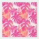Simple abstract pattern with leaves of monstera, fern, tropical plants, brush strokes, beige, pink, corall