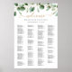 Designed to coordinate with our Moody Greenery wedding collection, this customisable seating chart template features watercolor eucalyptus branches & has been paired with a whimsical calligraphy and a classy serif font in gold and grey. To make advanced changes, please select "Click to customise further" option under Personalise this template.