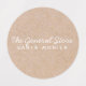 A simple circular sticker featuring a kraft look that's easy to apply. Easily add your store's name and address. Easily label your retail products and packaging. Find matching products in our store.