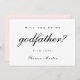 Simple and elegant godfather proposal card features "will you be my godfather" black script typography. This godparent proposal has a minimal and modern style in black and white, with a solid blush pink editable colour back of the card.