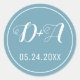 This round envelope seal sticker is a lovely way to add a touch of elegance and simplicity to your wedding stationery. It features your initials in a beautiful blue font that matches our “Blue and mint green watercolor flowers” wedding invitation suite. This sticker will complement your wedding theme and make your envelopes look more attractive and inviting.
