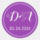 Simple and elegant initials purple wedding classic round sticker