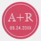 Simple and elegant initials red and white wedding envelope seal round stickert. It displays your initials in a script font on red. It is part of our "Pink and red flowers" wedding suite. You can change background colour to meet your needs.