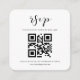 Simple and modern: a RSVP response card with a QR code that leads to your wedding website. Easy to customise with your own colours and QR code.
