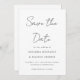 Minimal and modern black and white wedding save the date announcement features hand lettering script and a simple typography design. Shop this collection for coordinating wedding invitations!