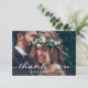 This elegant wedding thank you card is modern and minimalist, yet also has a charming vintage vibe. Chic white calligraphy script decorates the front, along with your favourite wedding photo, and an additional photo goes onto the back with your own personal message to your guests.