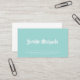 A simple light aqua turquoise business card with minimal text in a handwritten brush script.