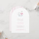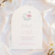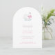 A simple arch birthday party invitation for your little girl with a watercolor illustration of a swan wearing a pink bow. Personalize with your party details in pink.