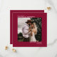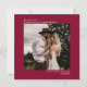 This simple wedding Save the Date card features an elegant square design with a cranberry red background and symmetrically placed text which is left justified on the top and right justified on the bottom. Upload your photo and give your guests advance notice of your upcoming wedding date.