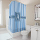 Simple Asst Sizes Blue and White Stripes Monogram Shower Curtain